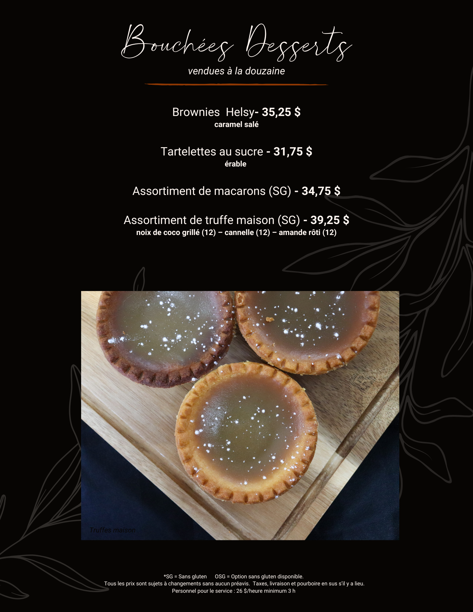 Contactez-nous au info@helsytraiteur.com ou au (581) 502-5224 afin de passer votre commande.